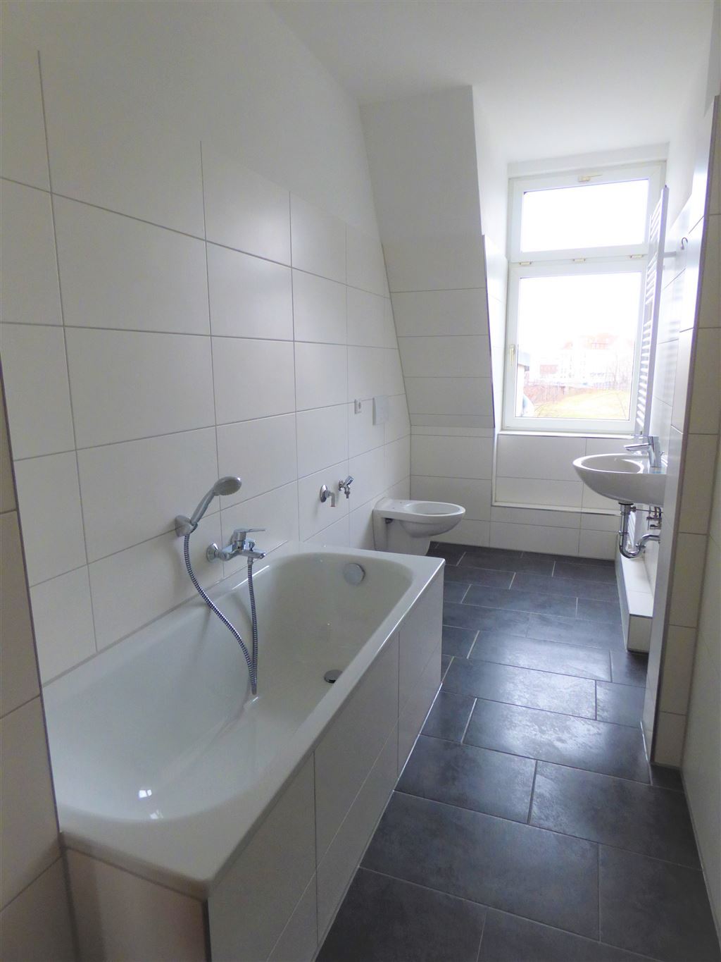 - Bad mit Wanne, Fenster, Handtuchheizkörper und WMA