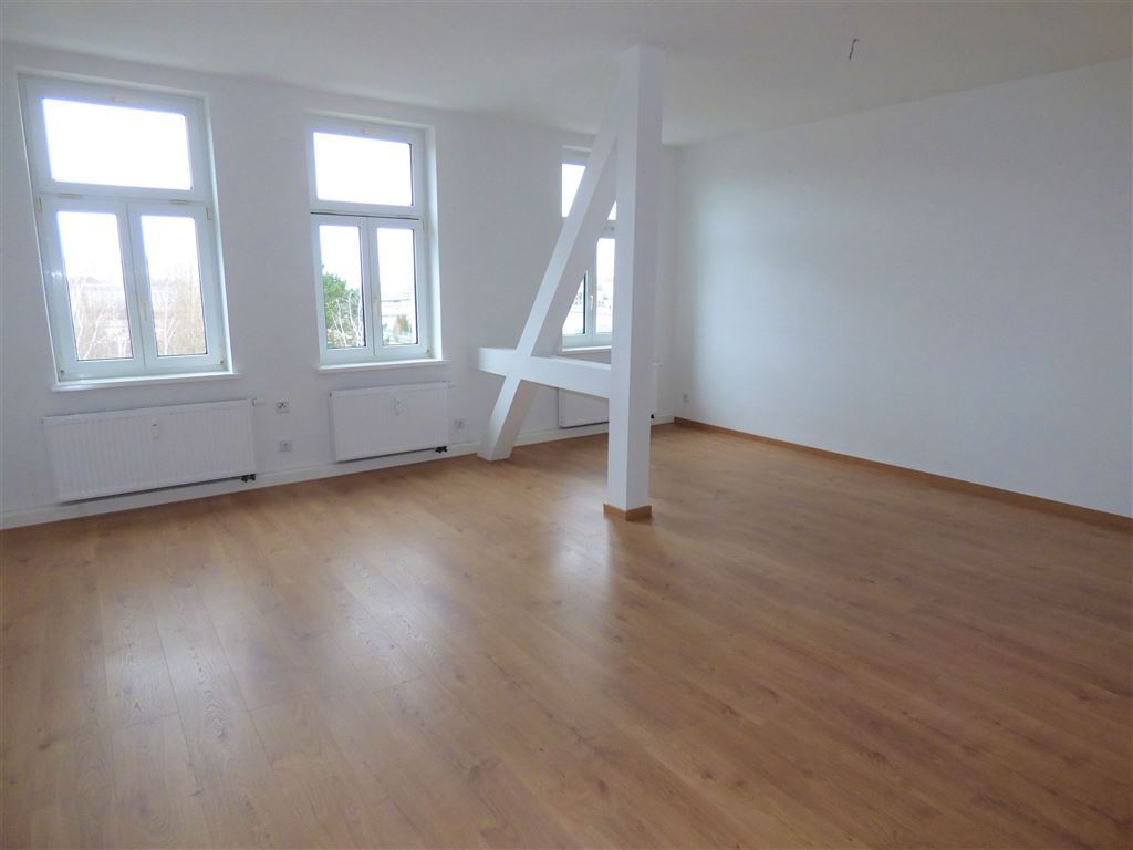 - Wohn- bzw. Schlafzimmer und Flur mit Laminat ausgelegt