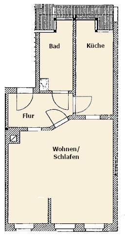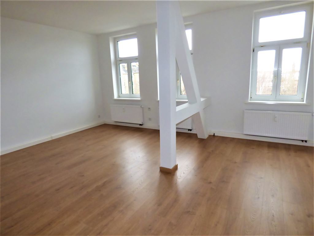 - Wohn- bzw. Schlafzimmer und Flur mit Laminat ausgelegt