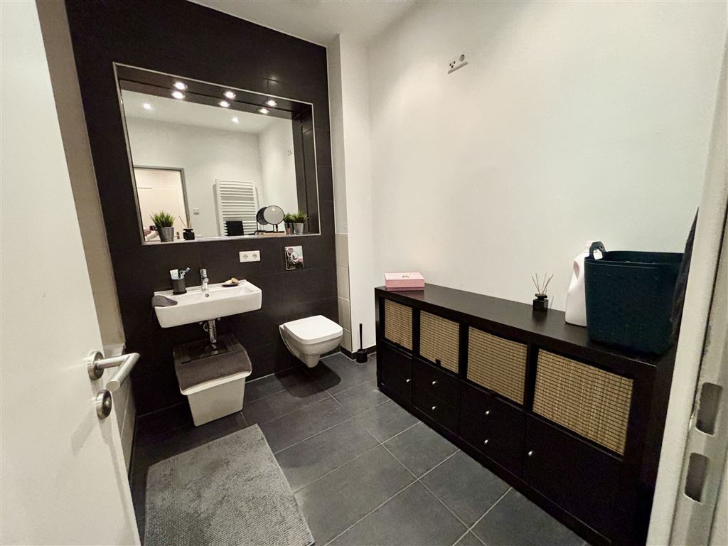 - Das modern geflieste Bad ist mit hochwertigen Armaturen ausgestattet und sorgt für ein angenehmes Ambiente.