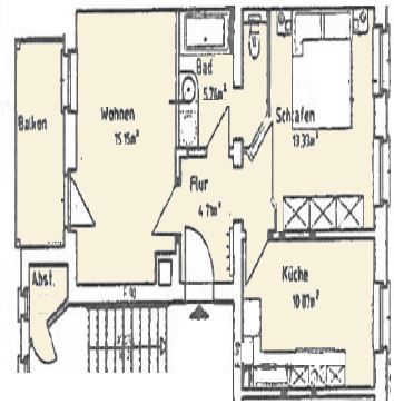 Wohnfläche: ca. 52,69 m² Zimmer: 2 Böden: Parkett im Flur, Wohn- und Schlafzimmer Badezimmer: Modern gefliest Balkon: Ausrichtung zum ruhigen Innenhof Beleuchtung: Teils mit Deckenspots Vermietet: Ja, zuverlässige Mieterin Ideal für Kapitalanleger Die Wohnung ist seit August 2007 vermietet. Die Nettokaltmiete beträgt 400,00 € mtl. (entspricht 7,59 € pro m²). Die Jahresnettokaltmiete gesamt beträgt 4.800,- €. Besichtigungen sind ausschließlich nach vorheriger Absprache möglich.