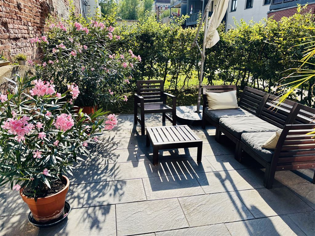 Die Wohnung besticht durch ihre großzügige Terrasse, die ideal für entspannte Stunden im Freien ist. Zudem gehört ein Gartenanteil zur Wohnung, der zusätzlichen Raum für Erholung und Freizeitaktivitäten bietet.