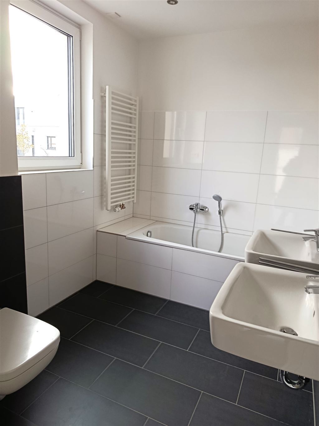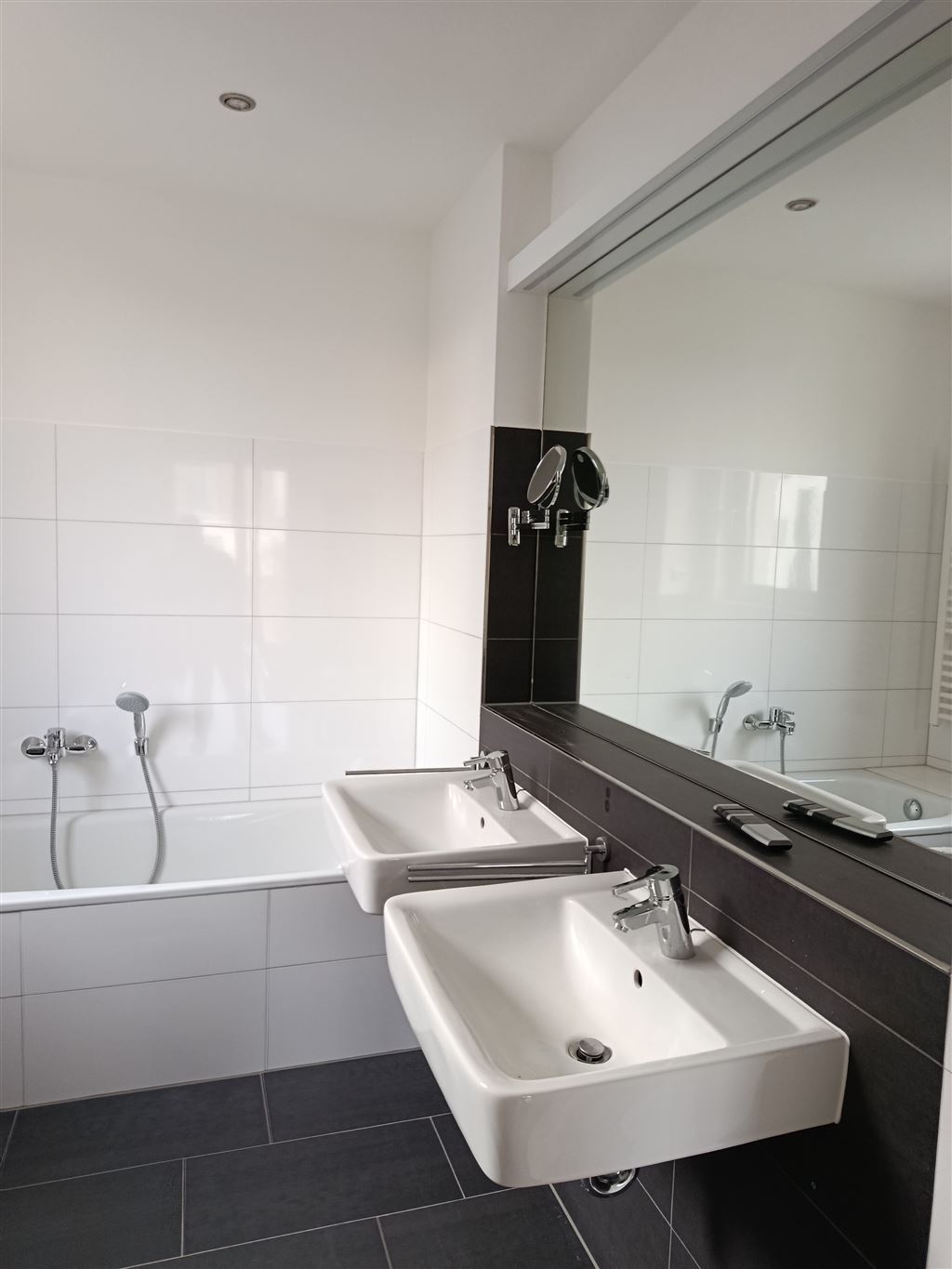 - modernes Bad mit Badewanne und Doppelwaschtisch