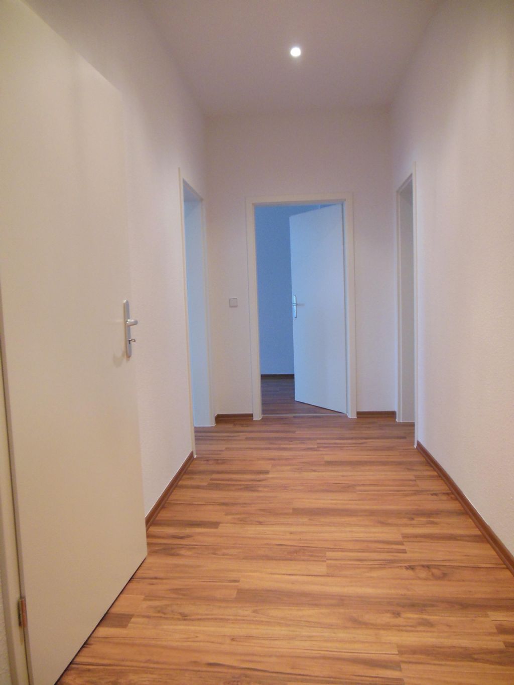 Bad und Küche sind modern anthrazitfarben gefliest, Schlafzimmer, Wohnzimmer und Flur mit modernem Laminat aus dem Jahre 2017 ausgestattet. Deckenspots in Flur, Küche und Bad machen die Räume freundlich und hell. Das Bad mit Fenster ist mit einer Wanne, einem Handtuchheizer und einem Spiegel ausgestattet. Schlafzimmer ist gartenseits gelegen, alle Räume sind mit TV Anschluss ausgestattet.