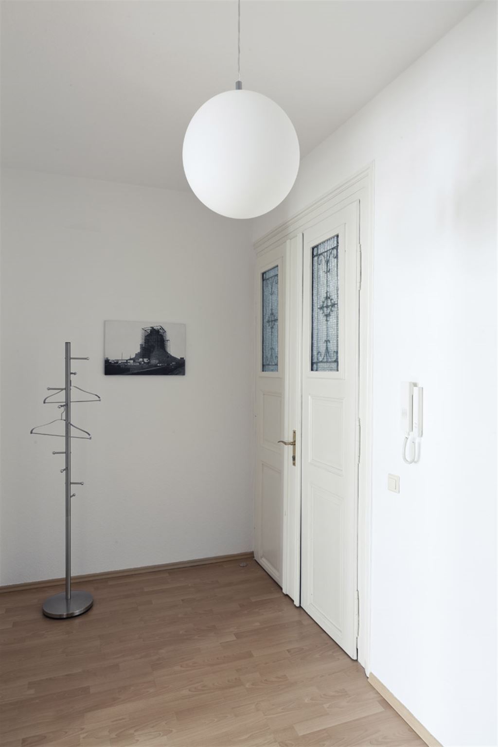 aufgearbeiteten Stuckelementen an der Decke. Der Boden im Wohnbereich ist mit