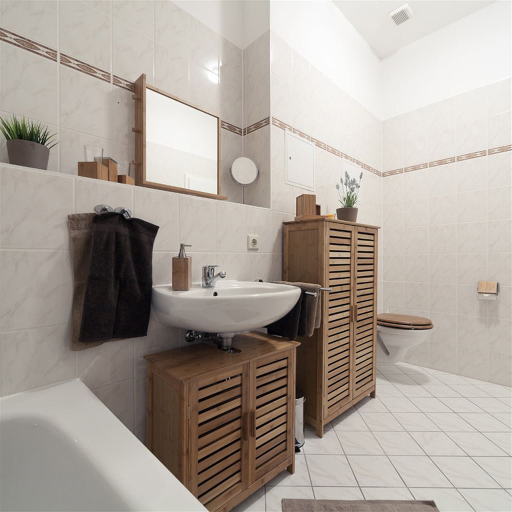 Fliesen verarbeitet. Des Weiteren ist in der Wohnung eine Abstellkammer, die perfekt