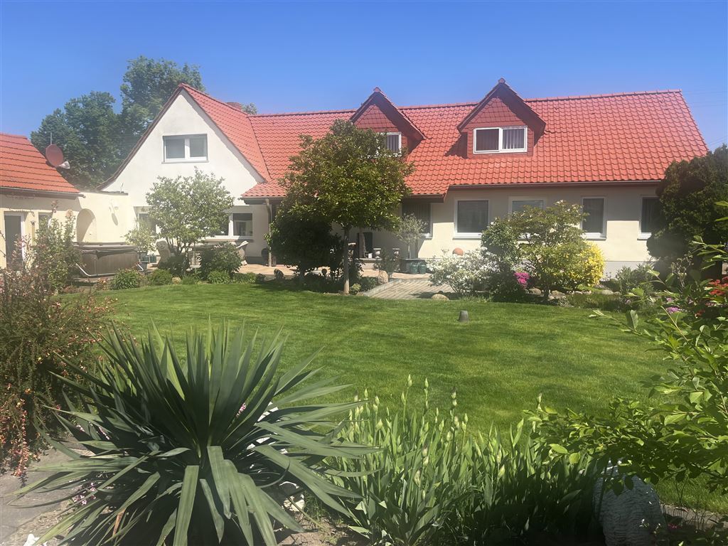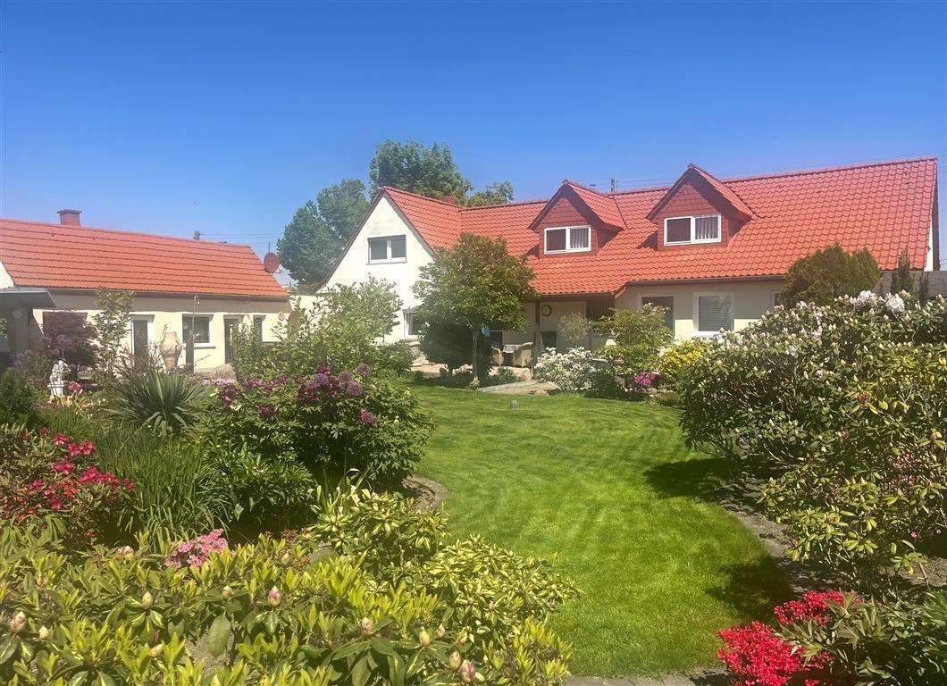 Schönes Anwesen mit großem wunderschön angelegtem Garten, Gartenhaus, einer Doppelgarage, einem Carport, 2 Stellplätzen und einem Brunnen.