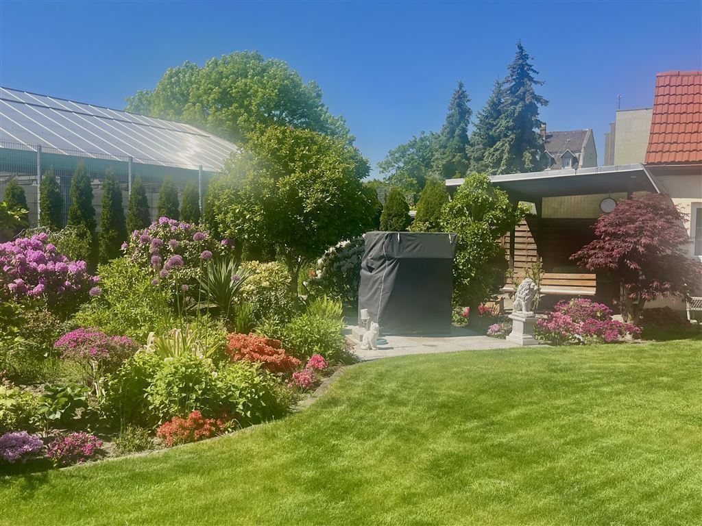 Das ca. 1.030 qm große und seit Jahrzehnten gewachsene Grundstück verfügt über einen großen Bestand an Blumen, Stäuchern und Bäumen. Mehrere Bereiche laden zum entspannen und verweilen ein.