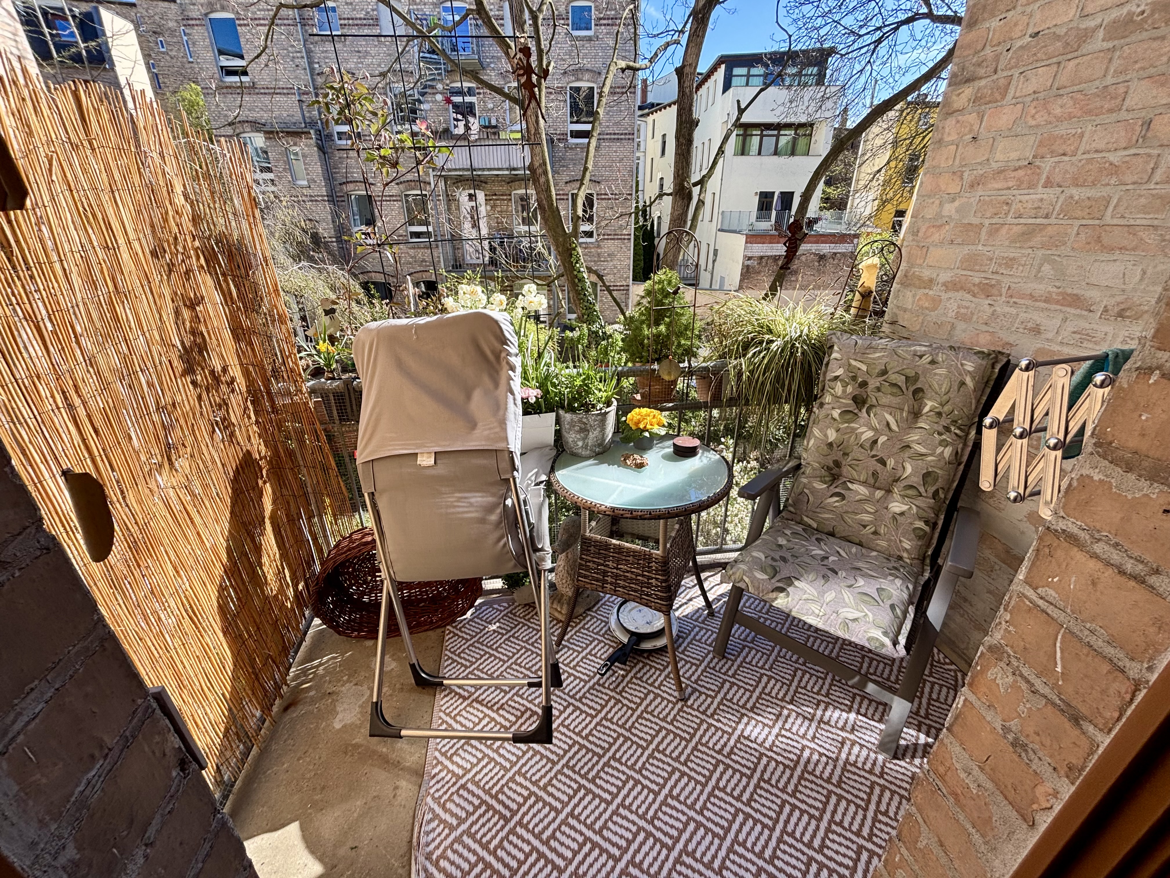 Ein hofseitig ausgerichteter Balkon, der direkt von der Küche aus zugänglich ist