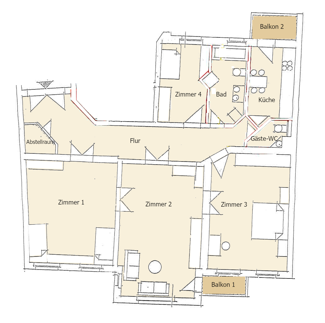 Attraktive 4-Zimmer-Wohnung im Baudenkmal mit Stuck, hohen Decken und zwei Balkonen