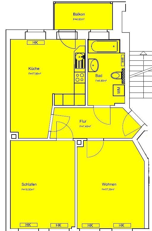 2- Raum Wohnung mit Holzdielen, Bad mit Wanne, Fenster und Handtuchheizung, WMA im Badezimmer, Große Küche mit Balkon, EBK vorhanden